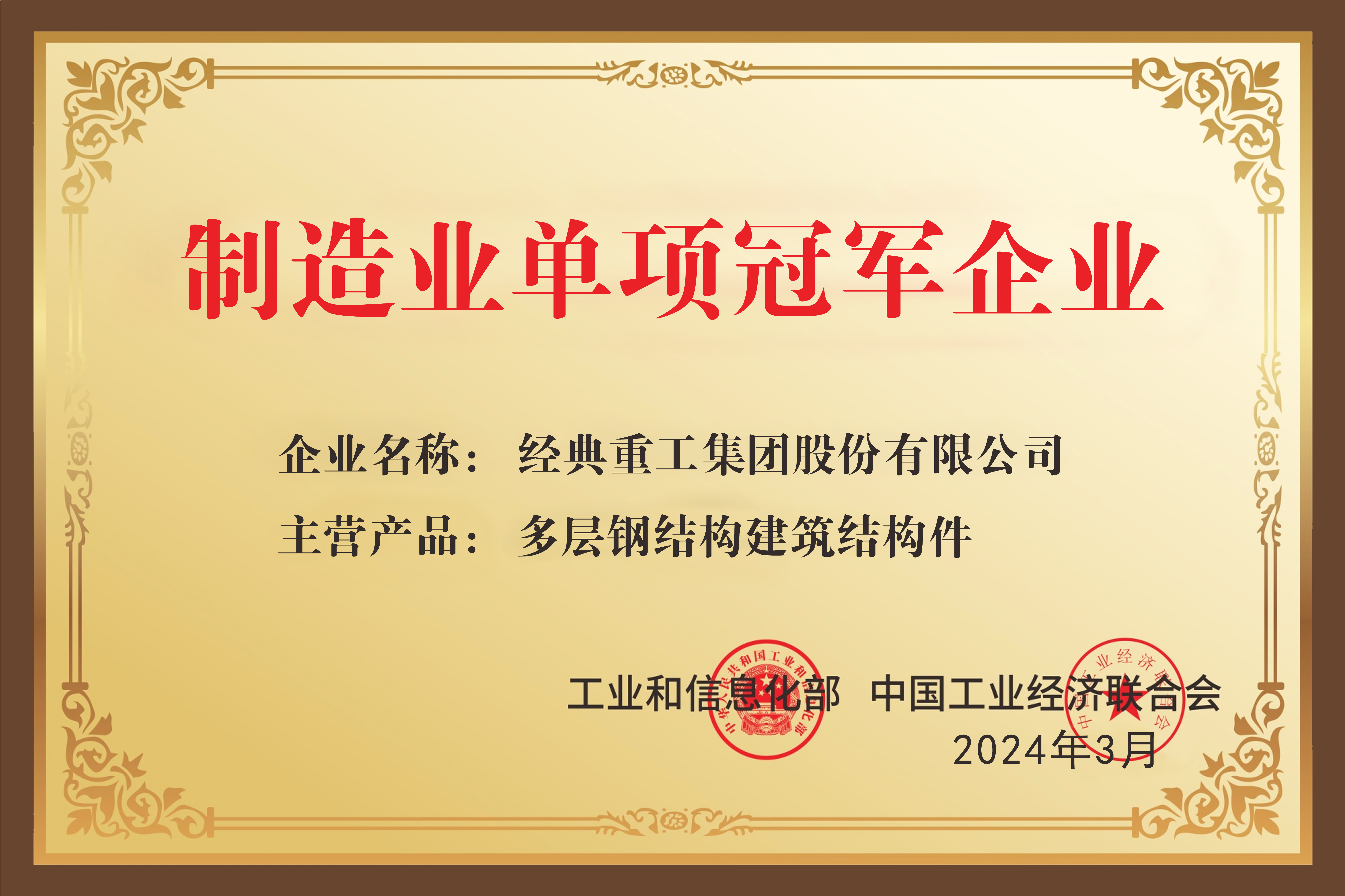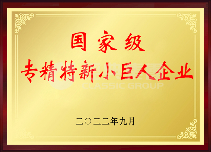 經典集團榮獲“國家級制造業單項冠軍示范企業”稱號。