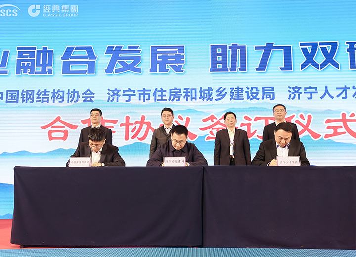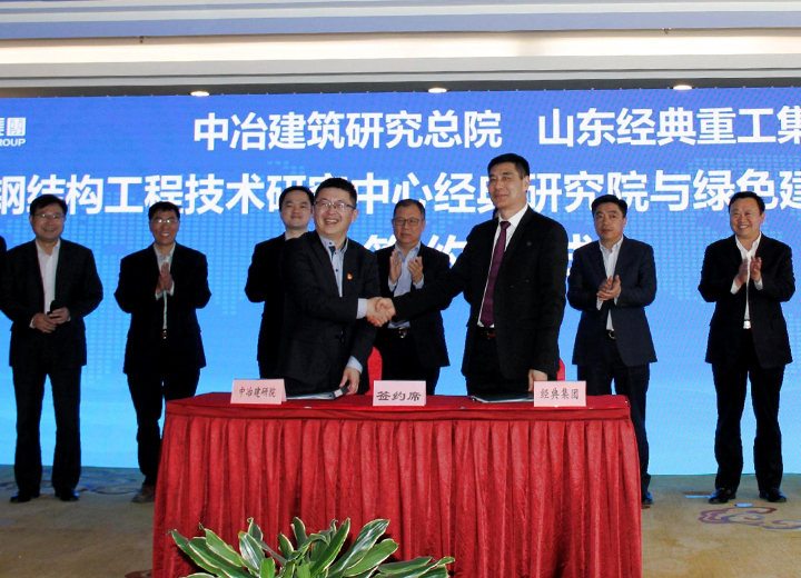 經典集團與山東建筑大學裝配式鋼結構房屋智能制造山東省工程研究中心啟動儀式在集團會議中心舉行。