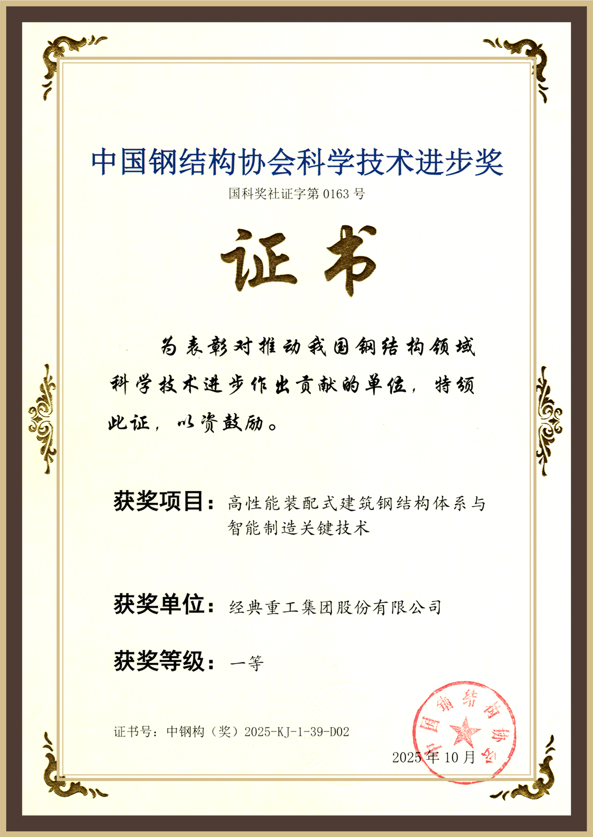 經典集團在中國鋼結構協會成立四十周年紀念大會上榮膺“卓越貢獻獎”,彰顯卓越貢獻與影響力。