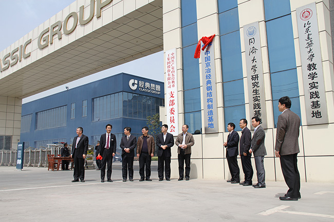 4月17日上午,經典集團舉辦中國京冶經典鋼結構制造基地揭牌儀式。中國鋼結構協會秘書長侯兆新,兗州區委常委、工業園區黨工委副書記、管委會副主任唐軍共同為基地揭牌。中國京冶工程技術有限公司鋼結構事業部常務副總經理常好誦,副總經理桂宇飛,中國鋼結構協會副秘書長李寧,行業事務部部長戴長河,經典集團董事長苗樹文,總經理杜福生,生產總經理王忠策,工會主席高建國,企劃部經理史振華等參加了揭牌儀式。