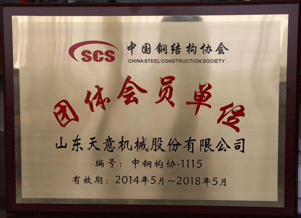 熱烈祝賀天意機械成功加入中國鋼結構協會