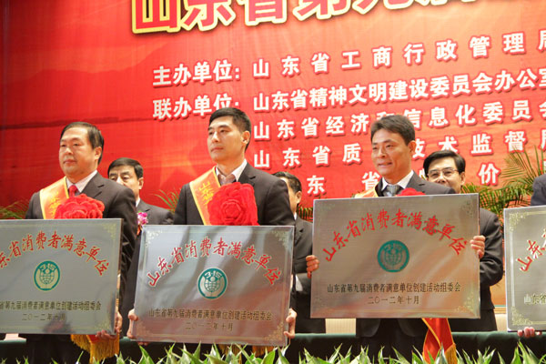 此次活動經(jīng)過消費者滿意度調(diào)查、各市初評、材料審查、省考評組考評、征求主管部門意見、省評審委員會審定、社會公示等流程,由省消協(xié)、省文明辦、省工商局、省質(zhì)監(jiān)局、省衛(wèi)生廳、省物價局、省總工會等13個部門共同認可肯定。該項榮譽的獲得標志著我公司的商品質(zhì)量及服務(wù)水平不僅得到了濟寧地區(qū)廣大消費者的高度認可,在省、乃至全國也具有了一定的知名度。山東省副省長張建國同志也指出,消費者滿意單位是塊“金字招牌”,是政府、社會和廣大消費者對誠實守信、依法經(jīng)營者的褒獎與認可。