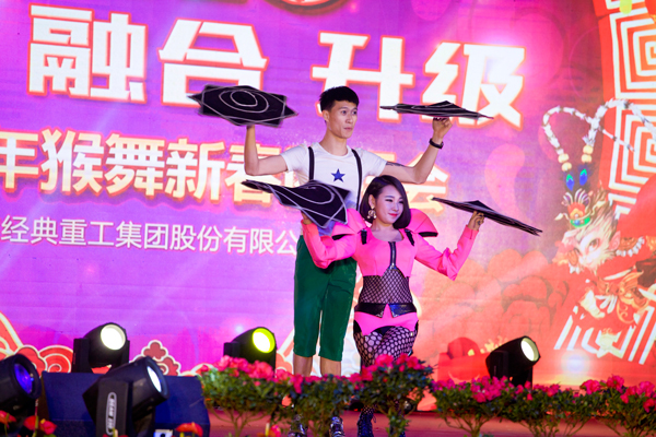 2月1日,山東經(jīng)典重工集團(tuán)股份有限公司在宴會(huì)中心舉辦“創(chuàng)新 融合 升級(jí)”2016年猴舞新春團(tuán)拜會(huì),慶祝新春佳節(jié)的到來。經(jīng)典集團(tuán)各子、分公司部分員工及家屬代表千余人參加團(tuán)拜會(huì)。