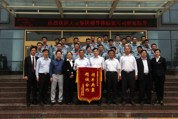 5月14日,天元集團旗下山東天元工業發展有限公司董事長張桂金率領管理、技術團隊一行30余人到經典集團參觀交流。經典集團董事長苗樹文,總經理杜福生,副總經理鄭健康,生產總經理王忠策,工會主席高建國,營銷部經理周霞,生產部經理李永苓,生產二部部長孔德旺等陪同。