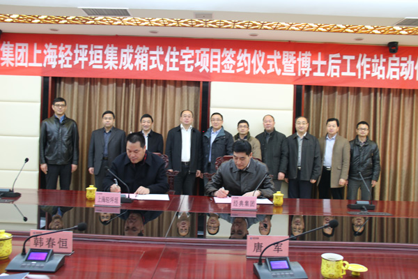 儀式上,經(jīng)典集團(tuán)與輕坪垣輕鋼房屋技術(shù)有限公司簽署了經(jīng)典集成箱式住宅項(xiàng)目合作協(xié)議,與同濟(jì)大學(xué)博士后姚行友簽訂了工作協(xié)議,標(biāo)志著經(jīng)典集成箱式住宅產(chǎn)學(xué)研合作項(xiàng)目和博士后工作站正式啟動。