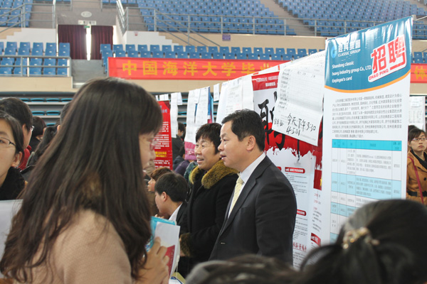 3月28日,繼青島理工大學(xué)2013年春季畢業(yè)生雙選會(huì)結(jié)束后,經(jīng)典集團(tuán)又一次組織參加中國(guó)海洋大學(xué)畢業(yè)生雙選會(huì)。我公司董事長(zhǎng)苗樹文,總經(jīng)理杜福生等領(lǐng)導(dǎo)一同參加了此次雙選會(huì)。