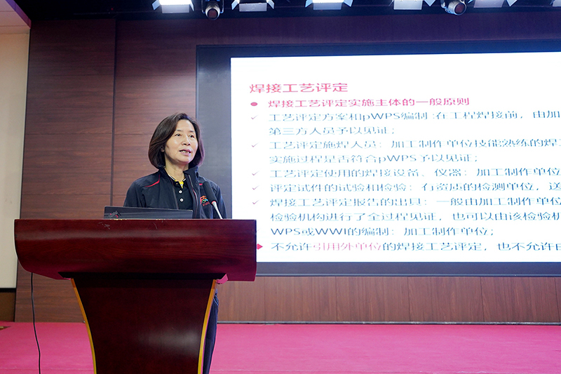 中國工程建設焊接協會培訓部主任、教授級高工嚴洪麗作《鋼結構厚板焊接質量控制》專題講座